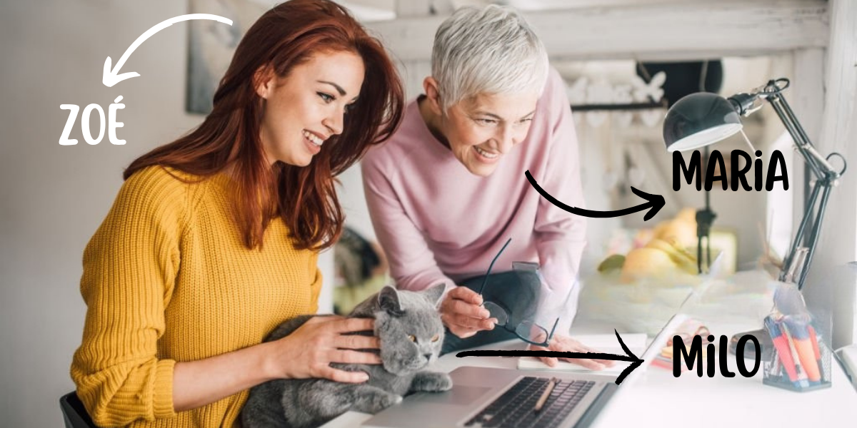 Puis Zach (et son chat Django) nous a rejoints, apportant son expertise pour transformer nos idées en produits concrets. Aujourd’hui, c’est avec Milo, notre nouveau chat, que nous poursuivons cette mission.