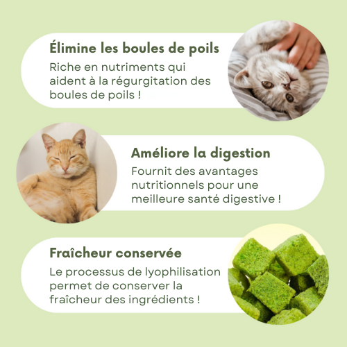 Grâce à l’herbe à chat incluse, la digestion est facilitée au quotidien.