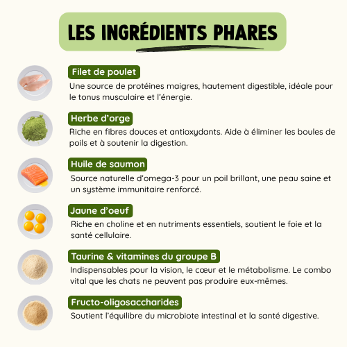 *Tous les additifs sont 100% naturels, sélectionnés pour répondre aux besoins essentiels du chat.