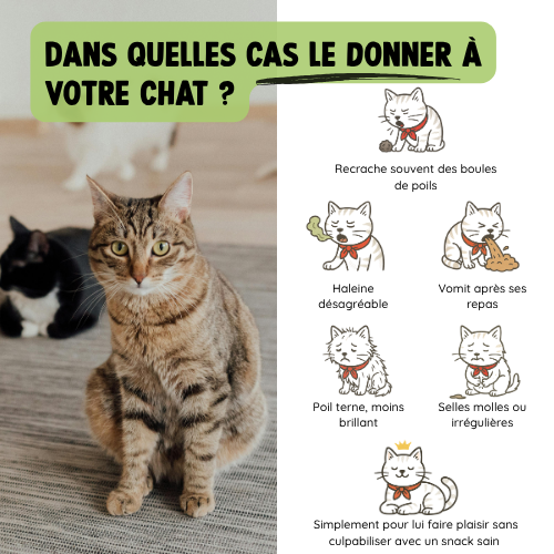 C’est généralement suffisant pour observer des effets visibles sur la digestion, les boules de poils ou l’hygiène bucco-dentaire.