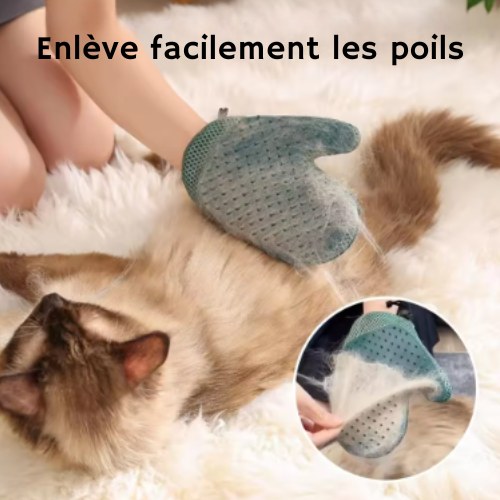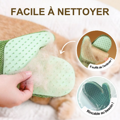 La grande surface du gant et sa texture spéciale capturent les poils en quelques passages, rendant le nettoyage rapide et sans effort.
